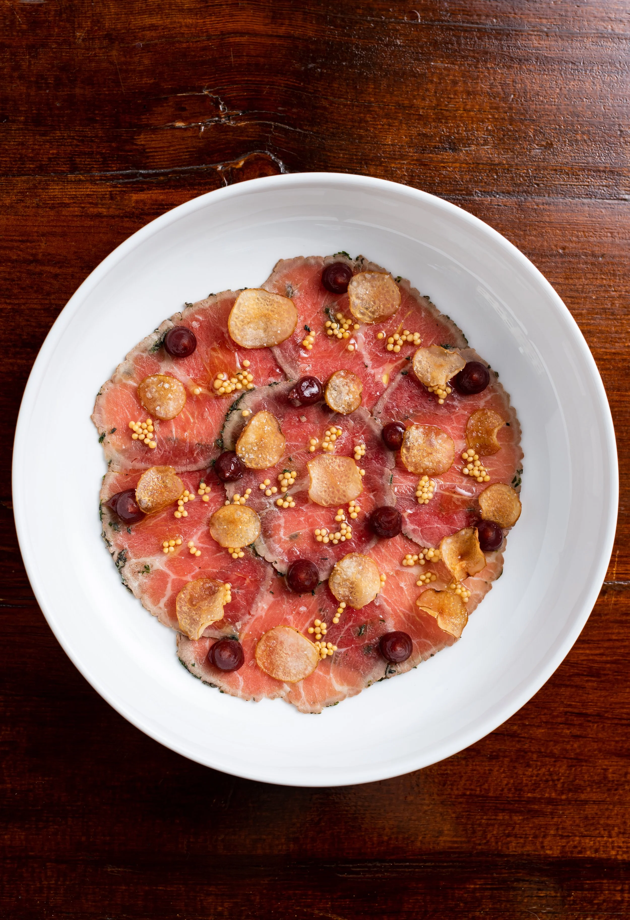 Red Onion Jam, Pickled Mustard Seed, Rosemary Oil, Kettle Chips (or GF Crackers)